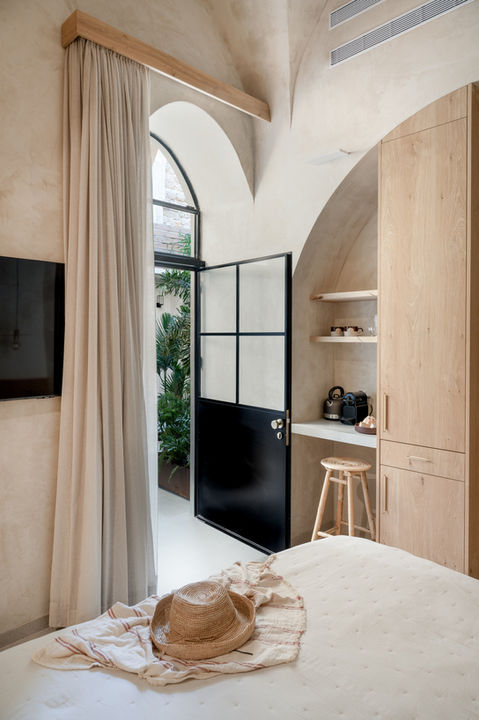 New Mediterranean style, high arched ceiling, modern furniture, bathroom with large shower and round standing tub, very comfortable mattress for your convenience.